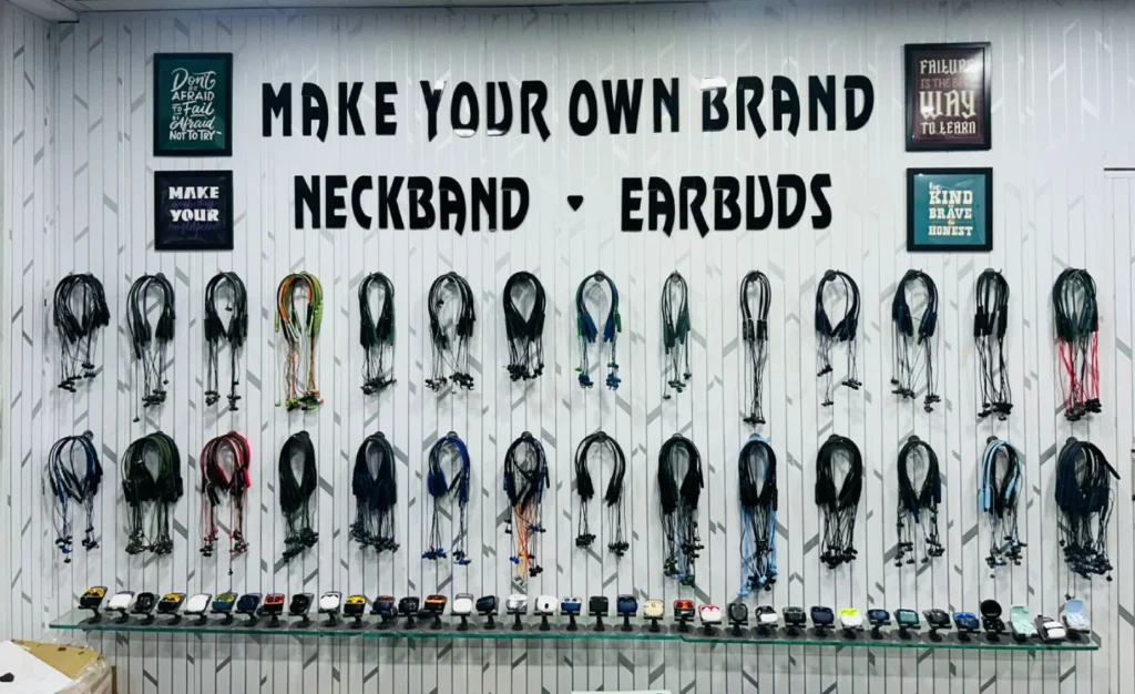 We specialize in OEM and white-label solutions for earbuds and neckbands. We import premium quality products, print your brand name (UV or Laser), customize packaging, and even change the Bluetooth search name to display your brand.